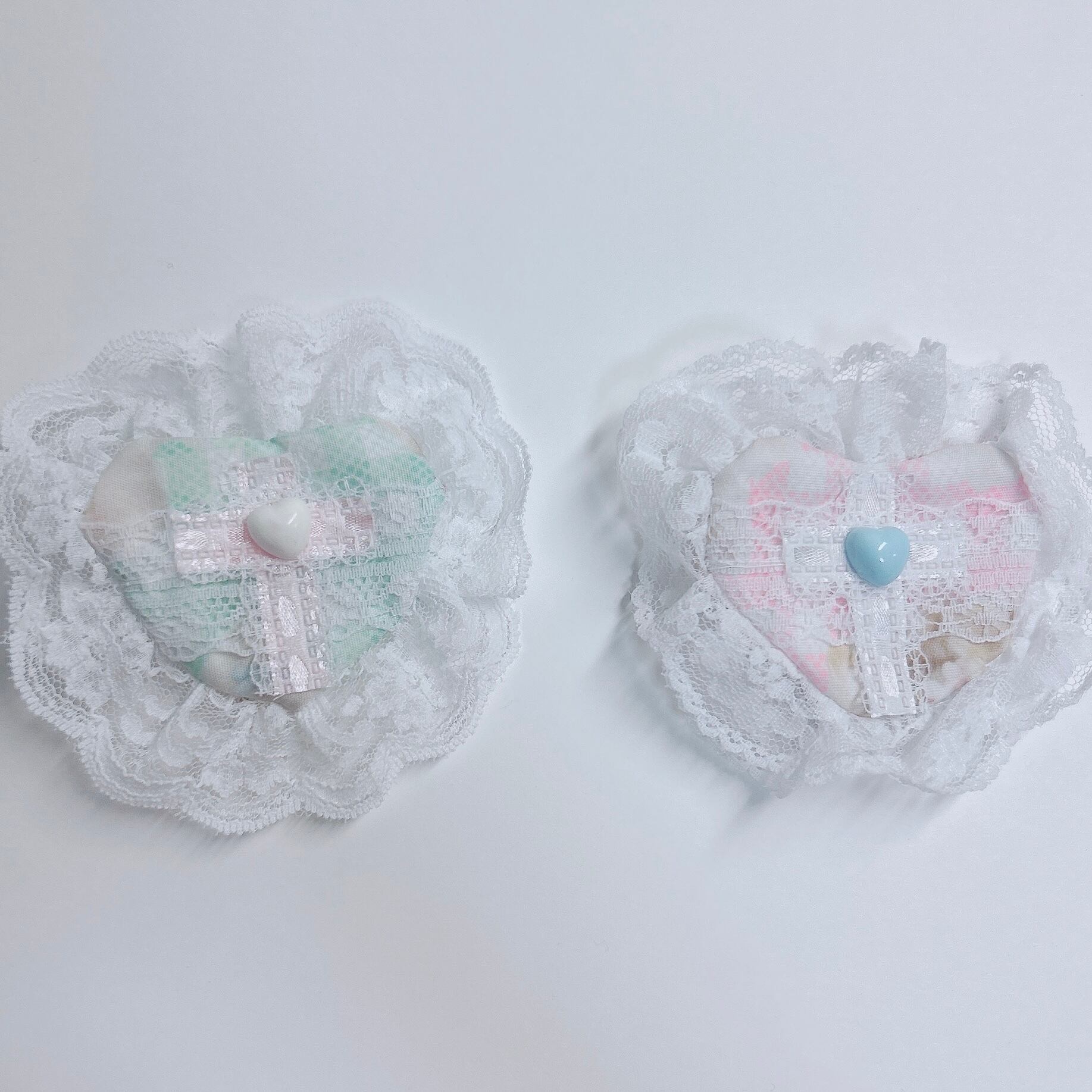レースいっぱいハート十字架ヘアピンです^> ·̫ <^